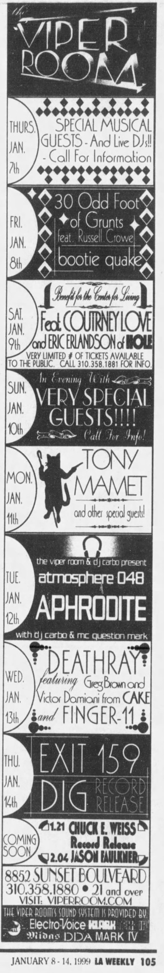 • Tom Hanks, Rita Wilson, Drew Barrymore, Jillian Fink (stylist), Scott Weiland, Brad Pitt, Jennifer Aniston, Adam Duritz, Jon Sidel, Rosanna Arquette, and Portia de Rossi were in the audience.