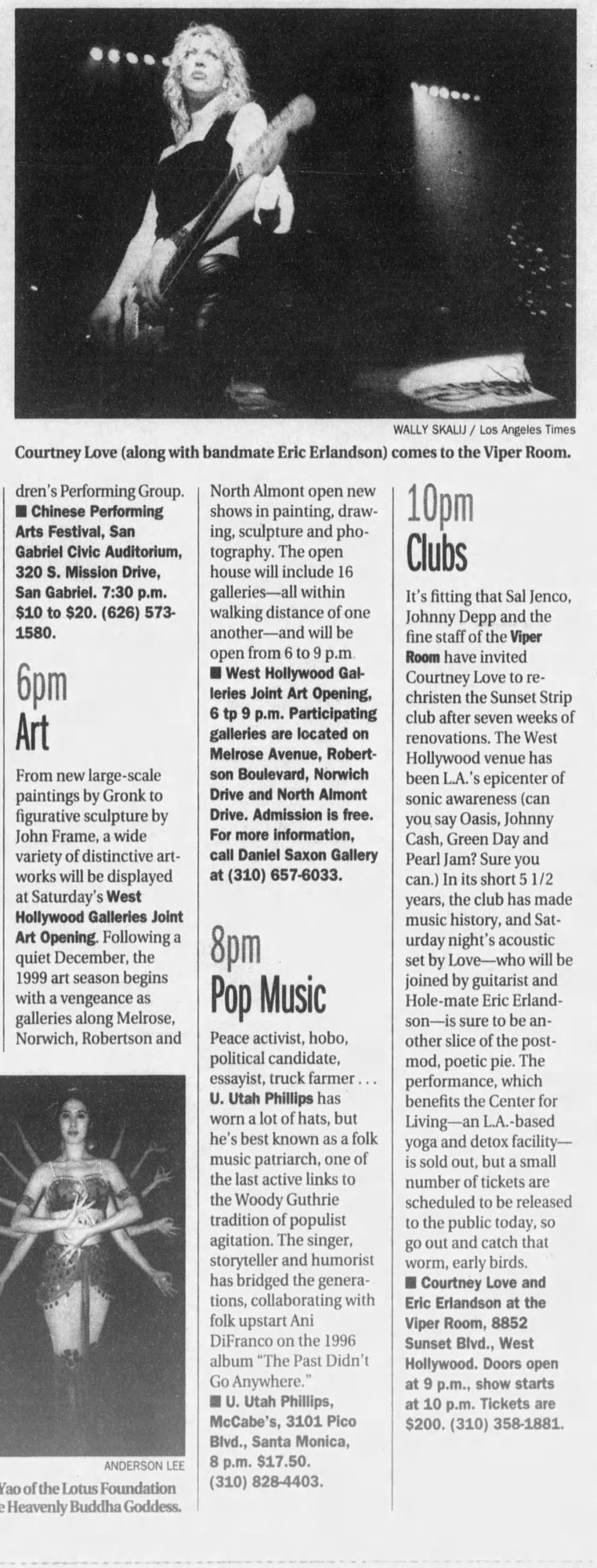 • An acoustic concert benefiting Golden Bridge Night Moon, a meditative center for living. A group from the center opened the show with Hindu yoga chants. Tickets cost $200.