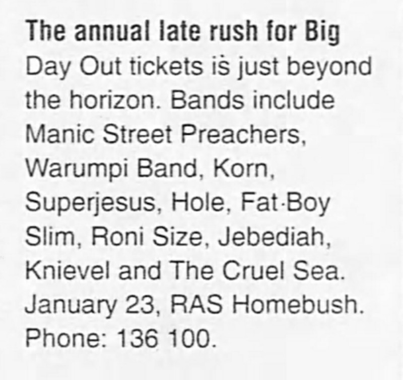 Venue: RAS Showgrounds (Big Day Out)