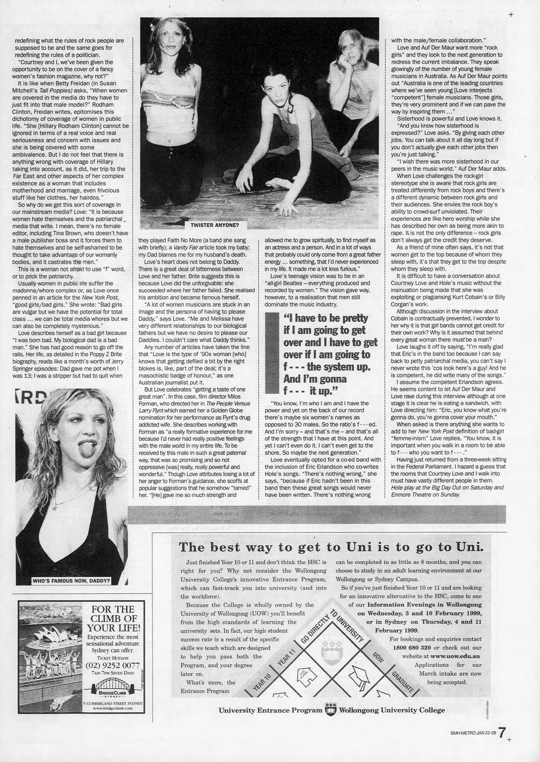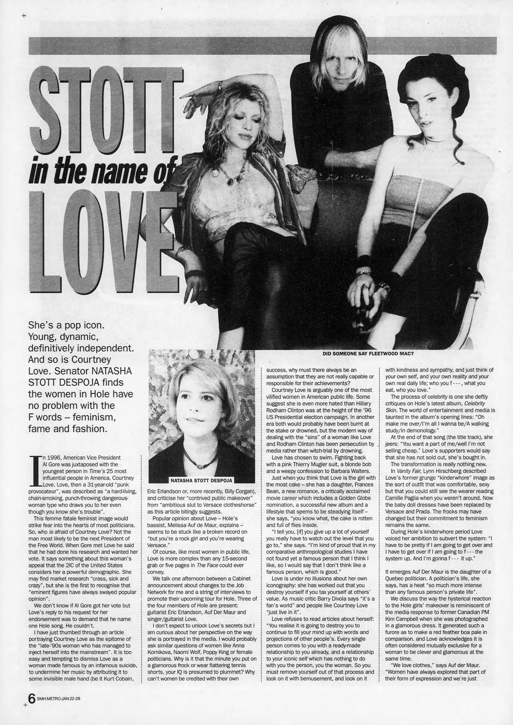 Hole Lineup: Courtney Love (Guitar/Vocals), Eric Erlandson (Guitar), Melissa Auf der Maur (Bass/Background Vocals), and Samantha Maloney (Drums).