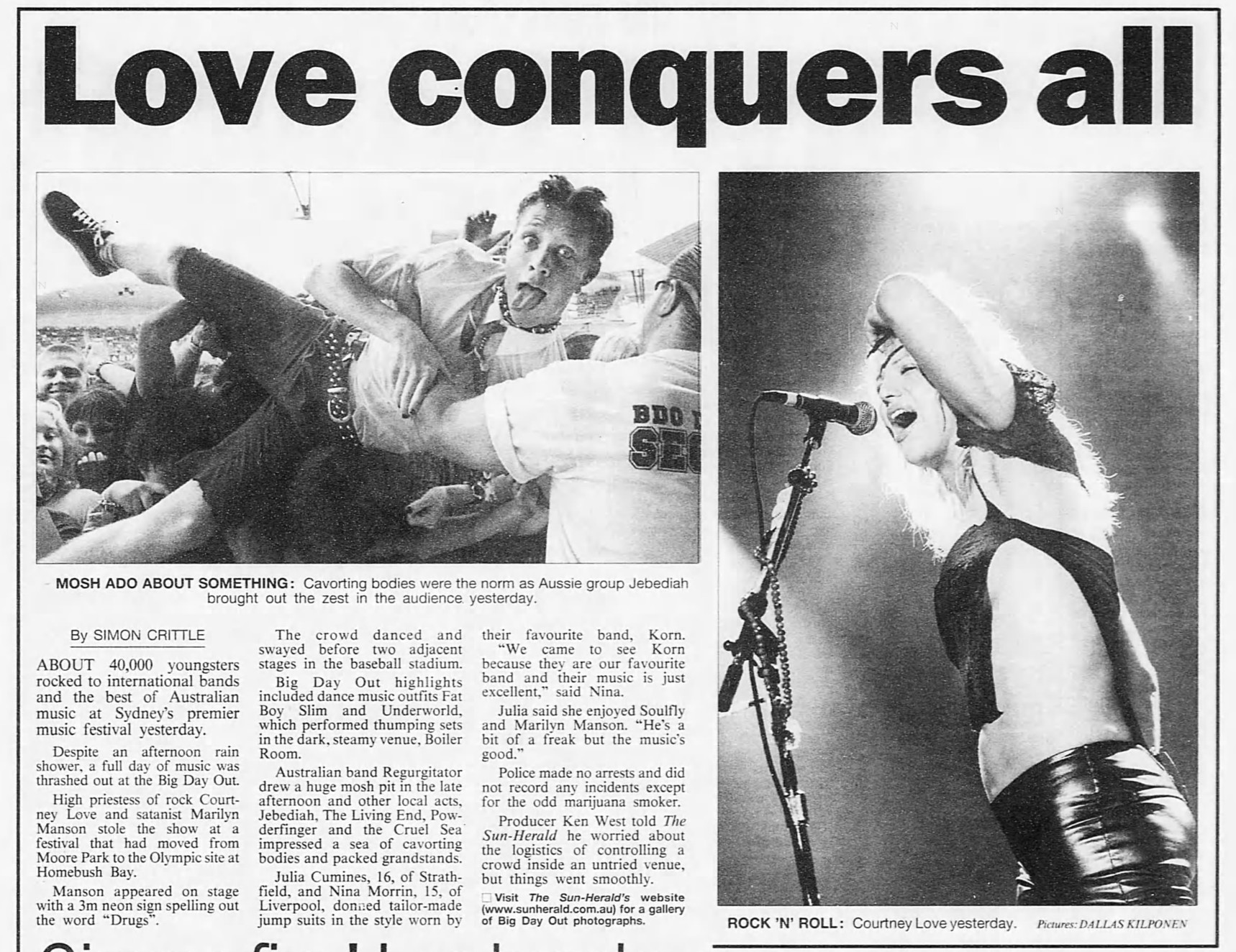 Other Acts: Marilyn Manson, Korn, Fatboy Slim, Underworld, Ash, Deejay Punk-Roc, Fun Lovin’ Criminals, Luke Slater Freek Funk, Manic Street Preachers, Roni Size, Sean Lennon, Soulfly, Sparklehorse, Warumpi Band, Regurgitator, Powderfinger, The Living End, Jebediah, Superjesus, Resin Dogs, Garageland, Fur, Sonic Animation, TISM, Even, Bexta, Ransom, Antenna, Groove Terminator, Happyland, Bodyjar, Not From There, B(if)tek, Frontside, Coda, Soma Rasa, 78 Saab, The Cruel Sea, Hoolahan, Karma County, DJ Sharif, Finiscad, Tulipan, Knievel, Boo Boo & Mace, Stephen Allkins, Meta base & Breath, DJ Abel, Friendly, Bass Code AllStars, Dave Edwards & MC Tiger Lulu, Matt Vs Kayla & MC Zar, Rekindle, Pappa Jase, Dharma Bums, Crucial D, Cyrogenic, Muzzy Pep, Testeagles, Dexta, Golden Rough, Mach1, Flywheel, C.L.M.