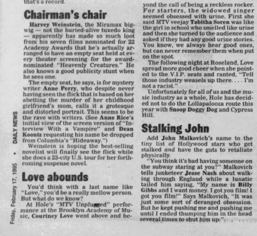 • Hole Unplugged aired April 17, 1995 on MTV.