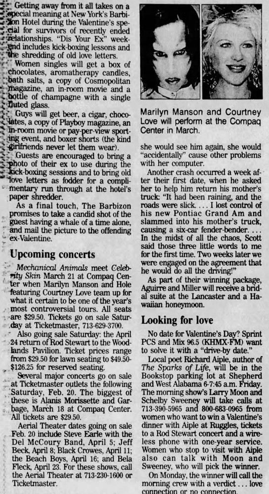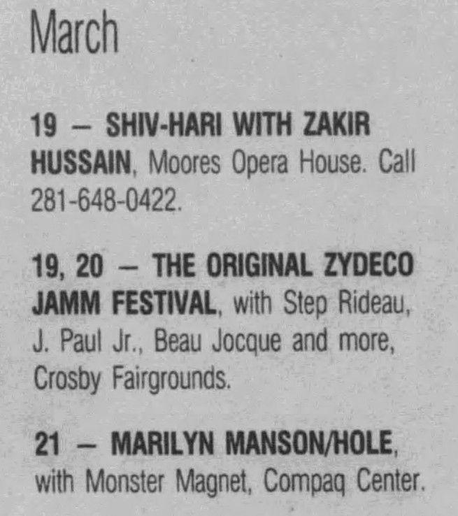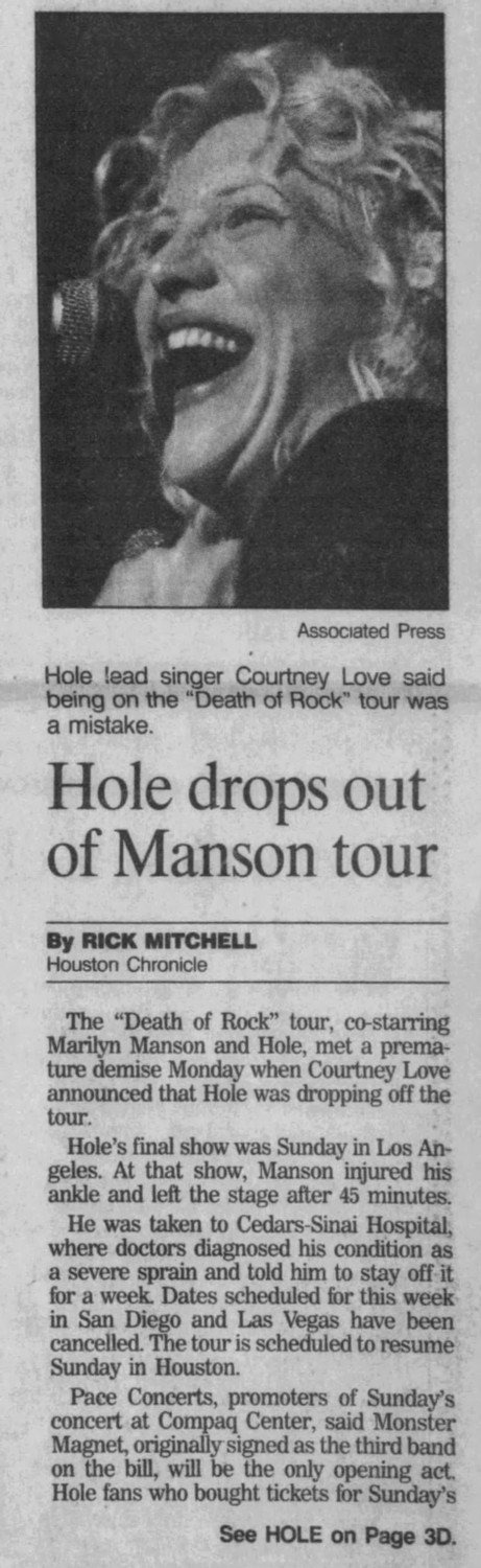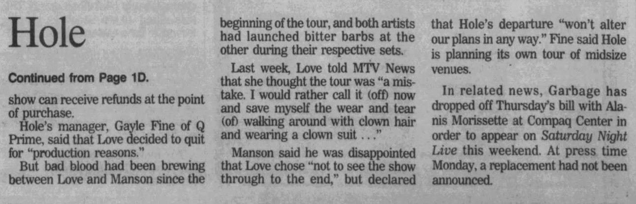 Notes: Hole’s set was cancelled because they left the tour. The show was played by the other two bands.
