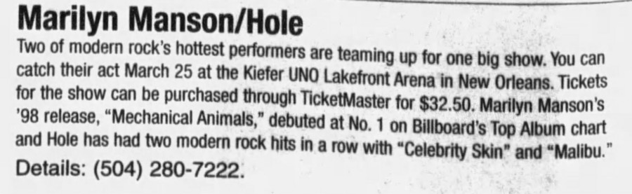 Hole Lineup: Courtney Love (Guitar/Vocals), Eric Erlandson (Guitar), Melissa Auf der Maur (Bass/Background Vocals), and Samantha Maloney (Drums).