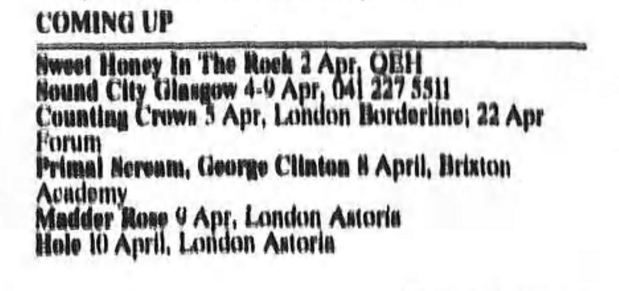 Notes: Cancelled due to Kurt Cobain’s health problems.