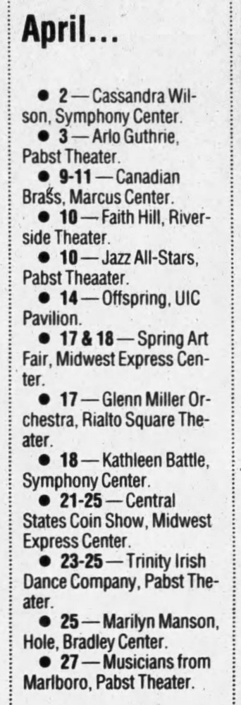 Notes: Hole’s set was cancelled because they left the tour. The show was played by the other bands.