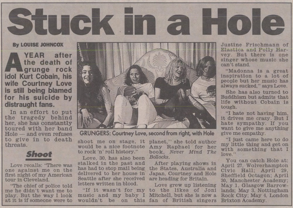 Hole Lineup: Courtney Love (Guitar/Vocals), Eric Erlandson (Guitar), Melissa Auf der Maur (Bass/Background Vocals), and Patty Schemel (Drums).