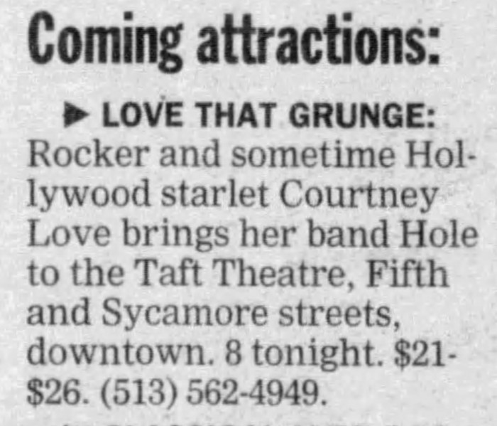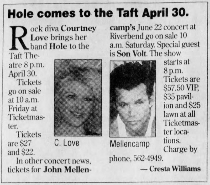• The first night of Hole’s U.S. tour for Celebrity Skin, after the failed Beautiful Monsters tour.