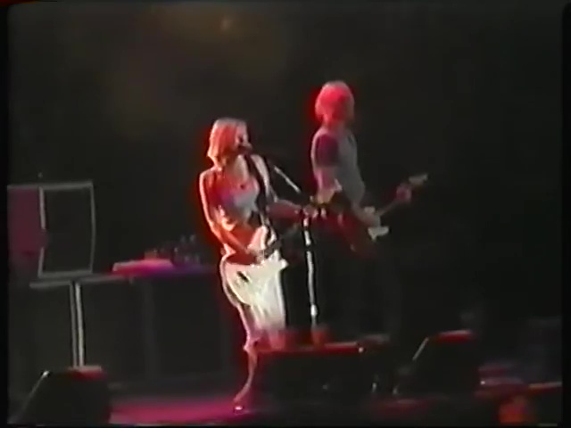 • During Pale Blue Eyes, someone in the audience threw a beer at Courtney. She challenged the guy to come on stage so she could beat him up. A guy came up to the front of the pit, but when Courtney asked him if he was the beer-thrower, he denied it.