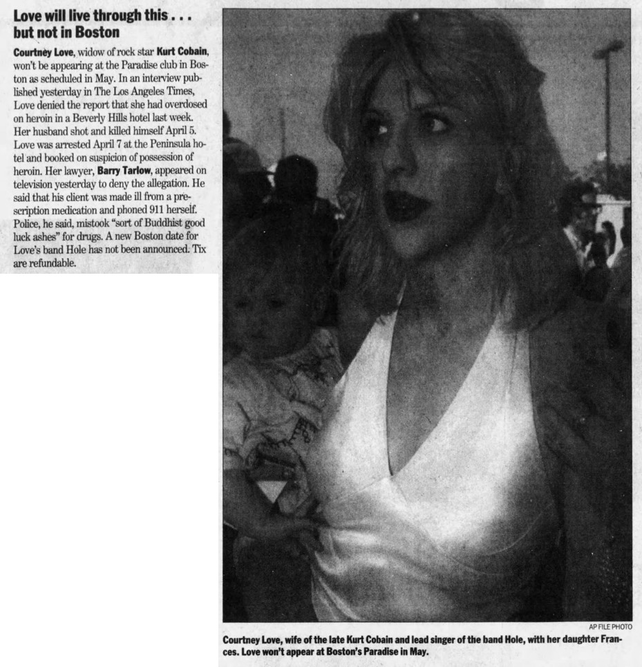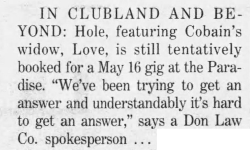 • This show was rescheduled for May 16th due to Kurt Cobain’s health problems, then cancelled altogether.