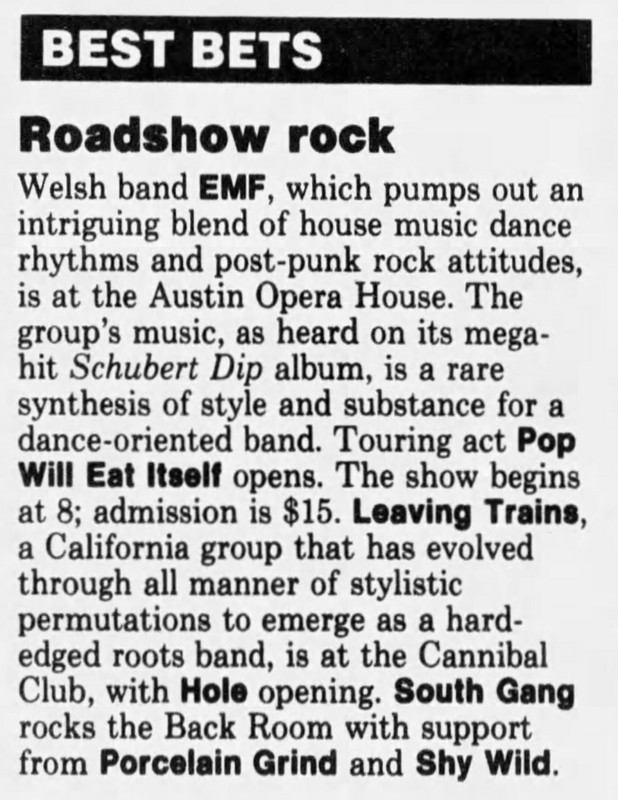 Notes: The lead singer of Leaving Trains, Falling James Moreland, was briefly married to Courtney in 1989.