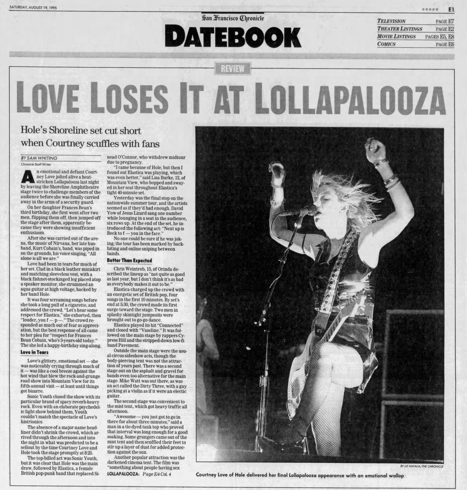 • Frances Bean’s 3rd birthday. Courtney led the crowd in singing Happy Birthday to her.