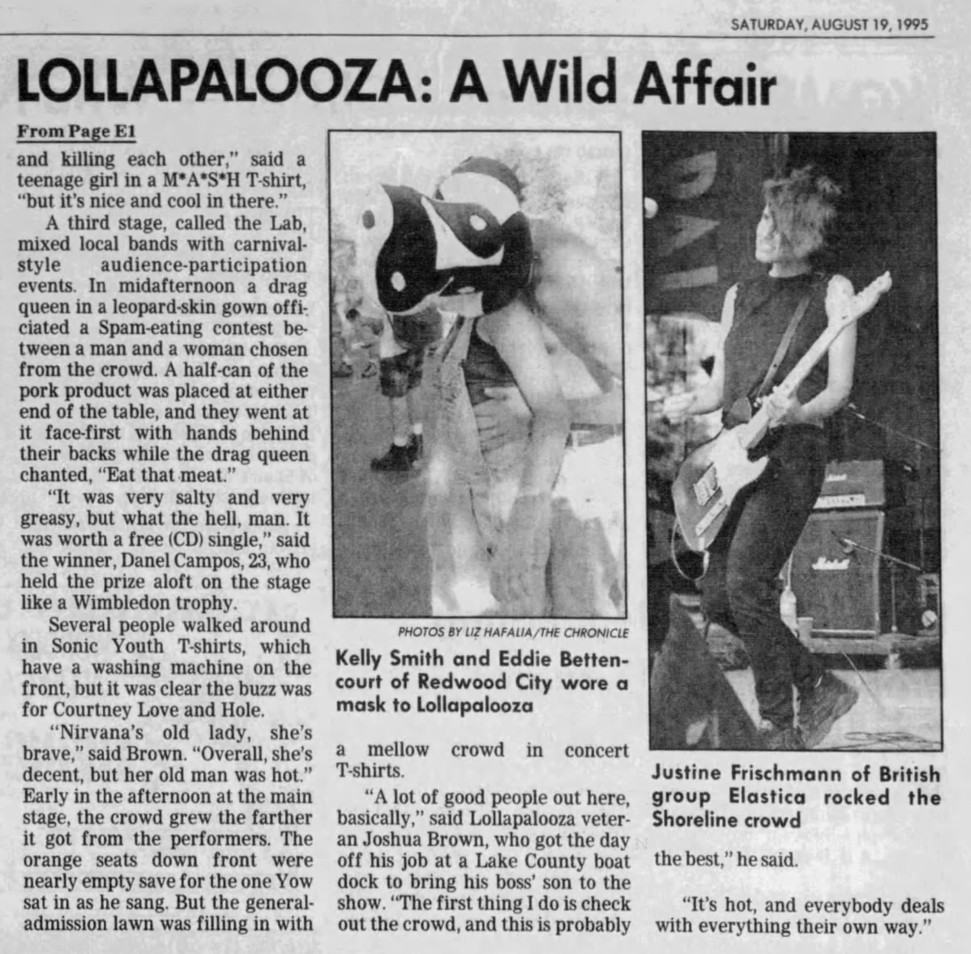 Other Acts: Sonic Youth, Cypress Hill, Pavement, Elastica, Beck, The Jesus Lizard, The Mighty Mighty Bosstones, Blonde Redhead, Dirty Three, The Roots, Versus, Mike Watt