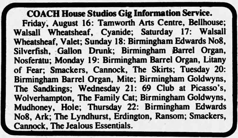 08-21-1991 Goldwyns Date: 08-21-1991 Location: Birmingham, England Venue: Goldwyns Setlist: Unknown Surfaced: No Hole Lineup: Courtney Love (Guitar/Vocals), Eric Erlandson (Guitar), Jill Emery (Bass), and Carolyn Rue (Drums). Other Bands: Mudhoney Memorabilia: Photos: