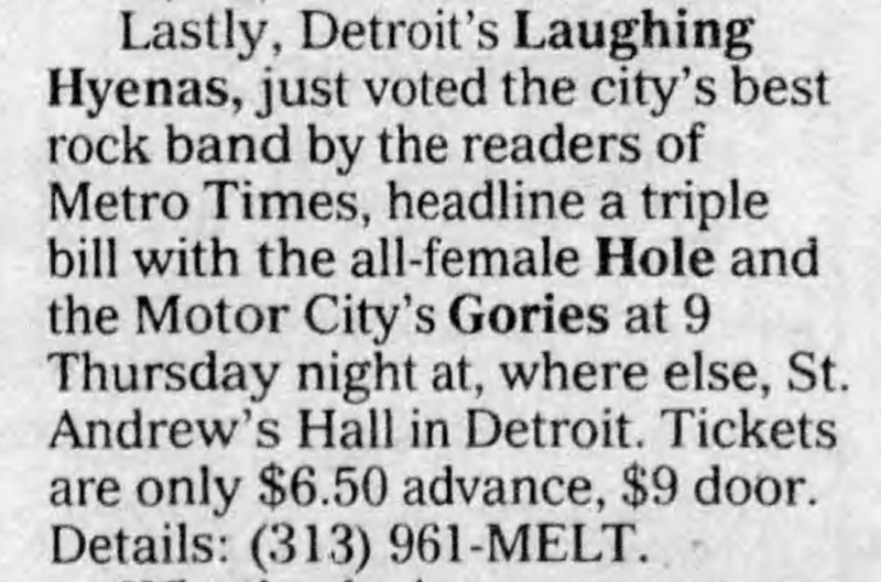 Hole Lineup: Courtney Love (Guitar/Vocals), Eric Erlandson (Guitar), Jill Emery (Bass), and Carolyn Rue (Drums).