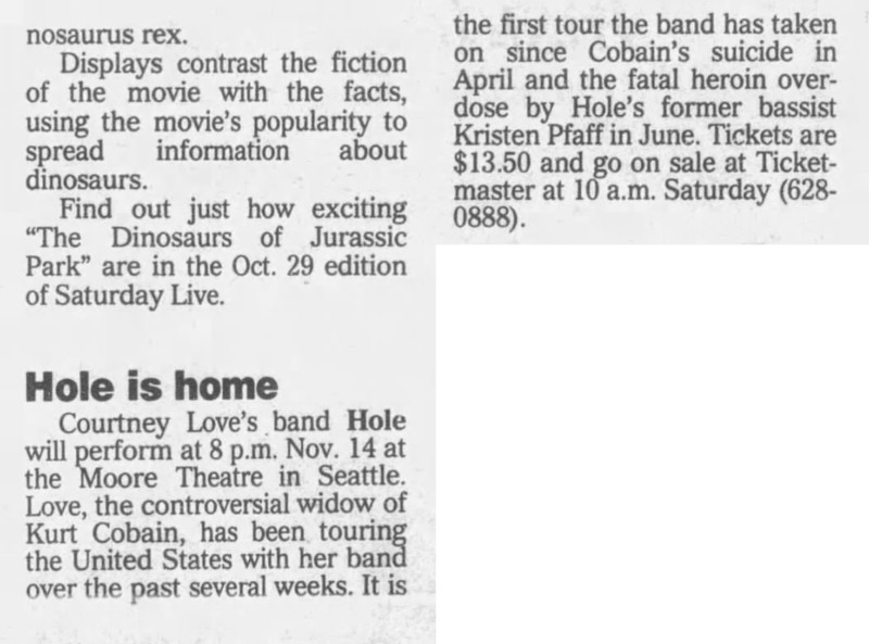 Notes: After Olympia, Courtney stage dived.