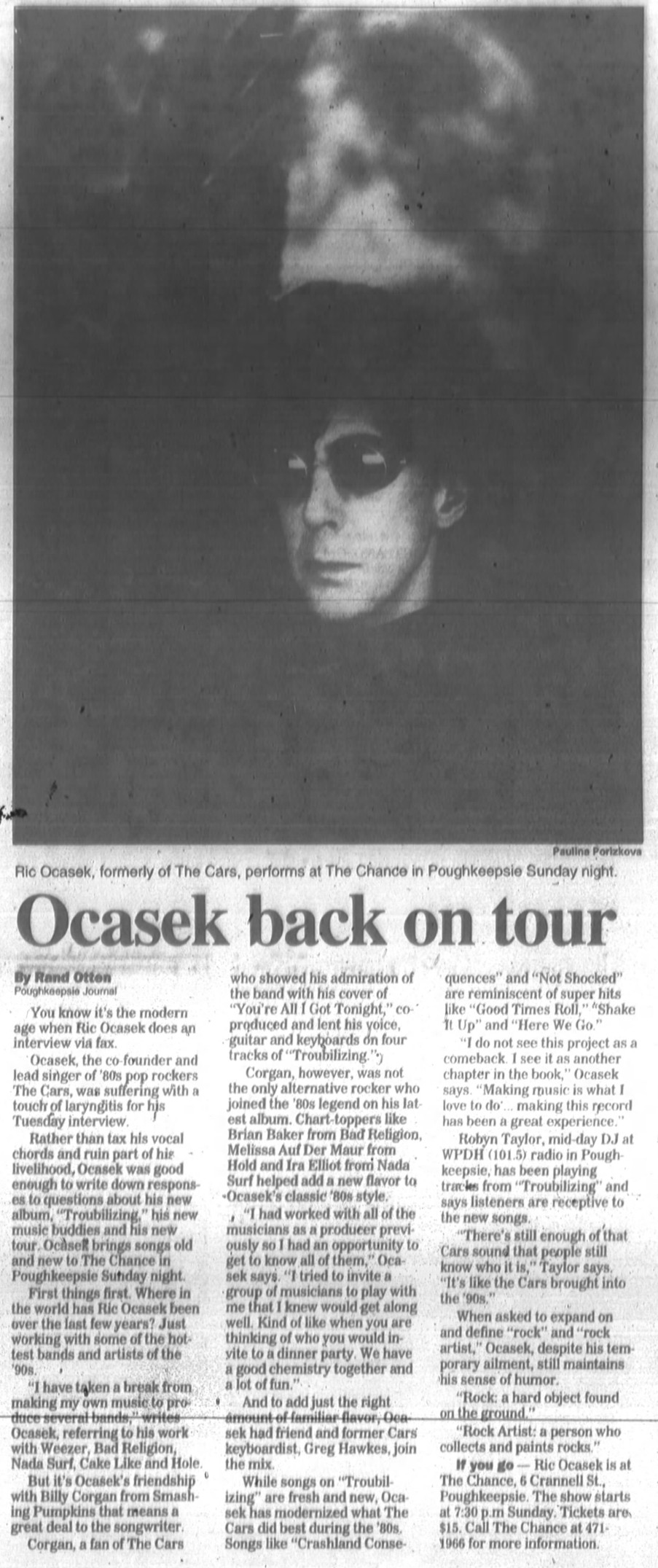Band Lineup: Ric Ocasek (Guitar/Vocals), Brian Baker (Guitar), Melissa Auf der Maur (Bass/Background Vocals), Greg Hawkes (Keyboards), and Ira Elliot (Drums).