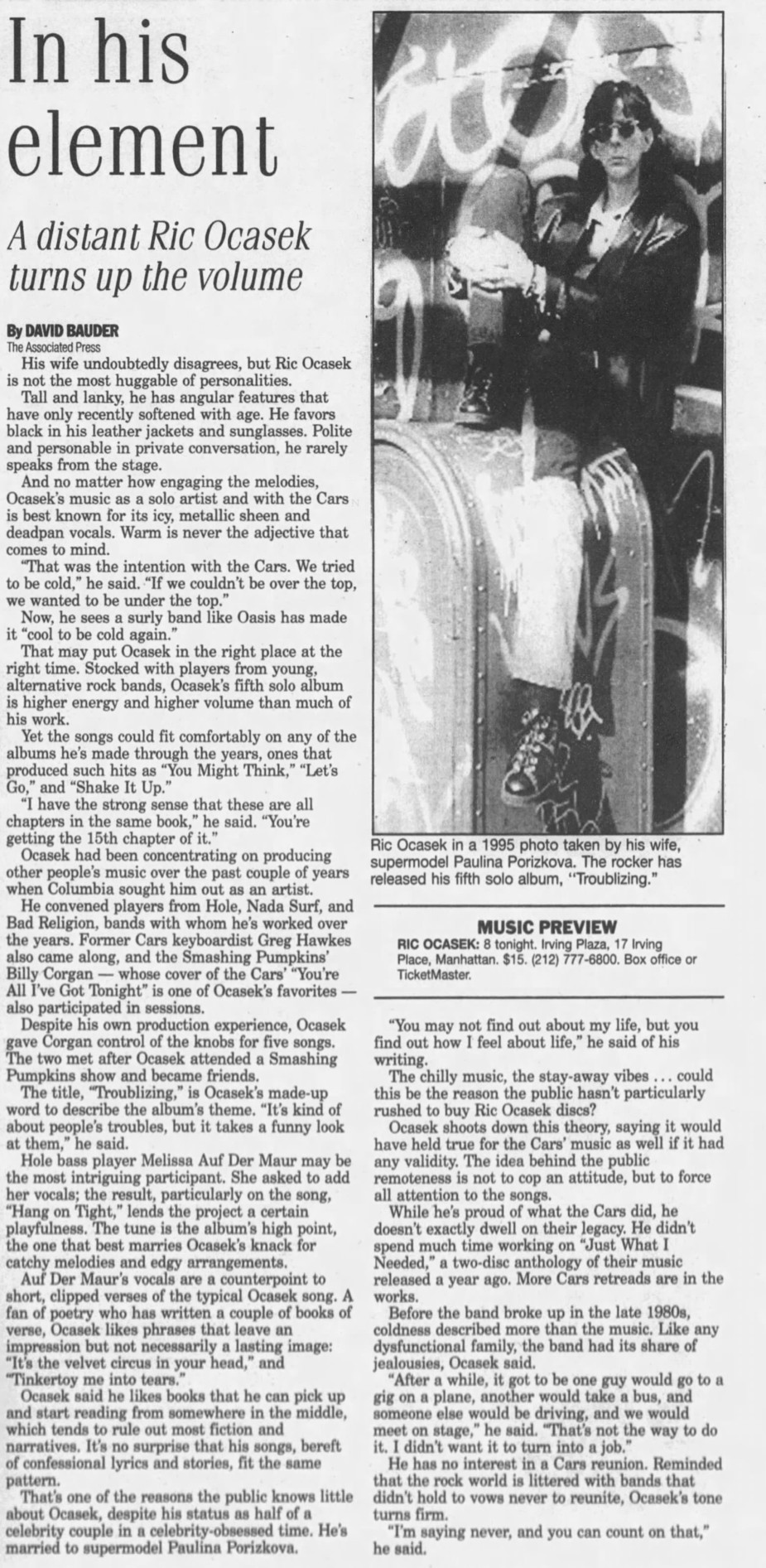 Band Lineup: Ric Ocasek (Guitar/Vocals), Brian Baker (Guitar), Melissa Auf der Maur (Bass/Background Vocals), Greg Hawkes (Keyboards), and Ira Elliot (Drums).