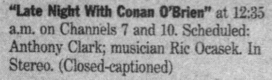 Venue: Studio 6A, NBC Studios (Late Night with Conan O’Brien)