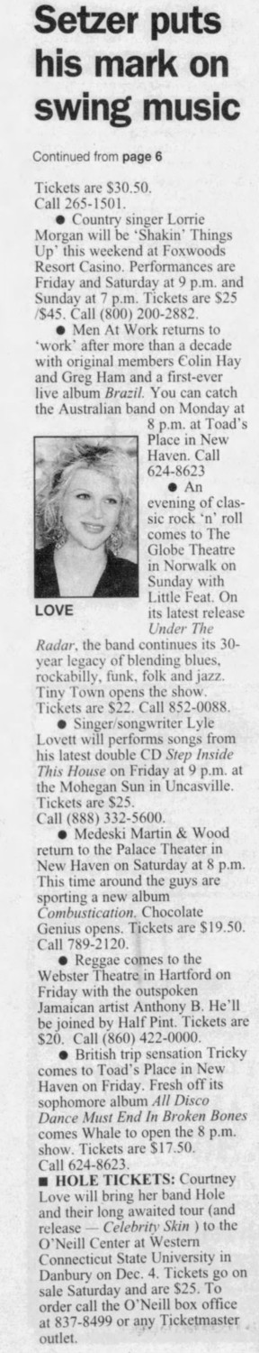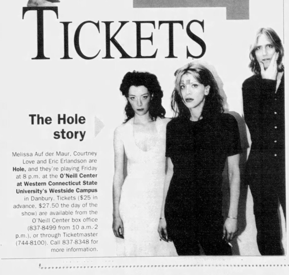 Hole Lineup: Courtney Love (Guitar/Vocals), Eric Erlandson (Guitar), Melissa Auf der Maur (Bass/Background Vocals), and Samantha Maloney (Drums).