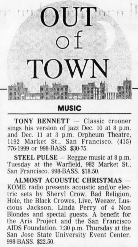 Venue: San Jose Events Center (KOME’s Almost Acoustic Christmas)