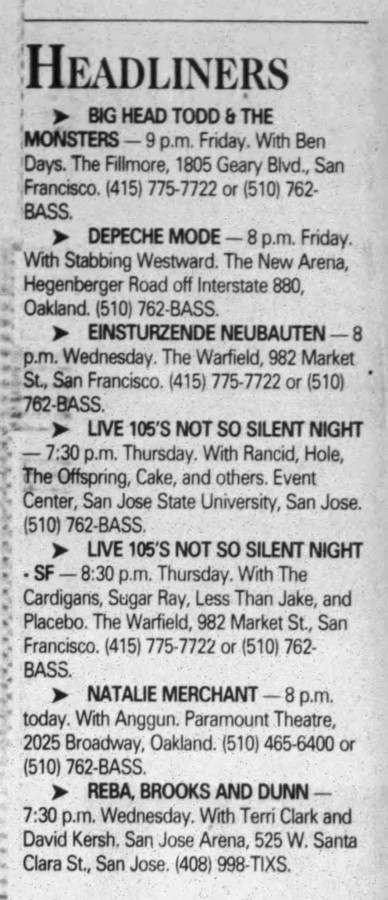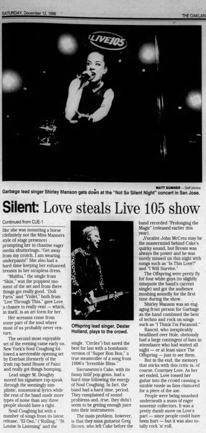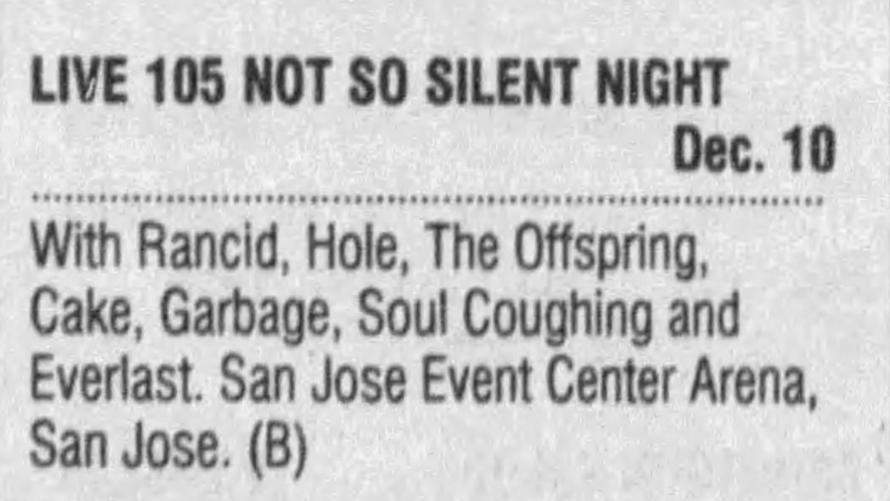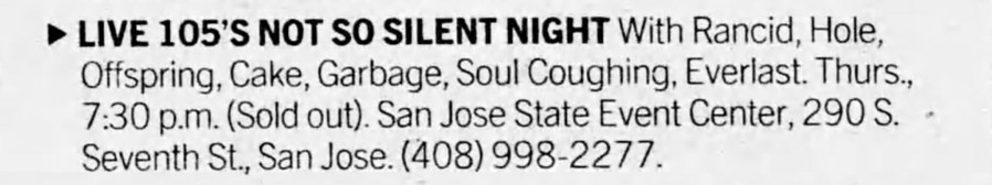 Other Acts: Garbage, Soul Coughing, Cake, Everlast, The Offspring, Rancid
