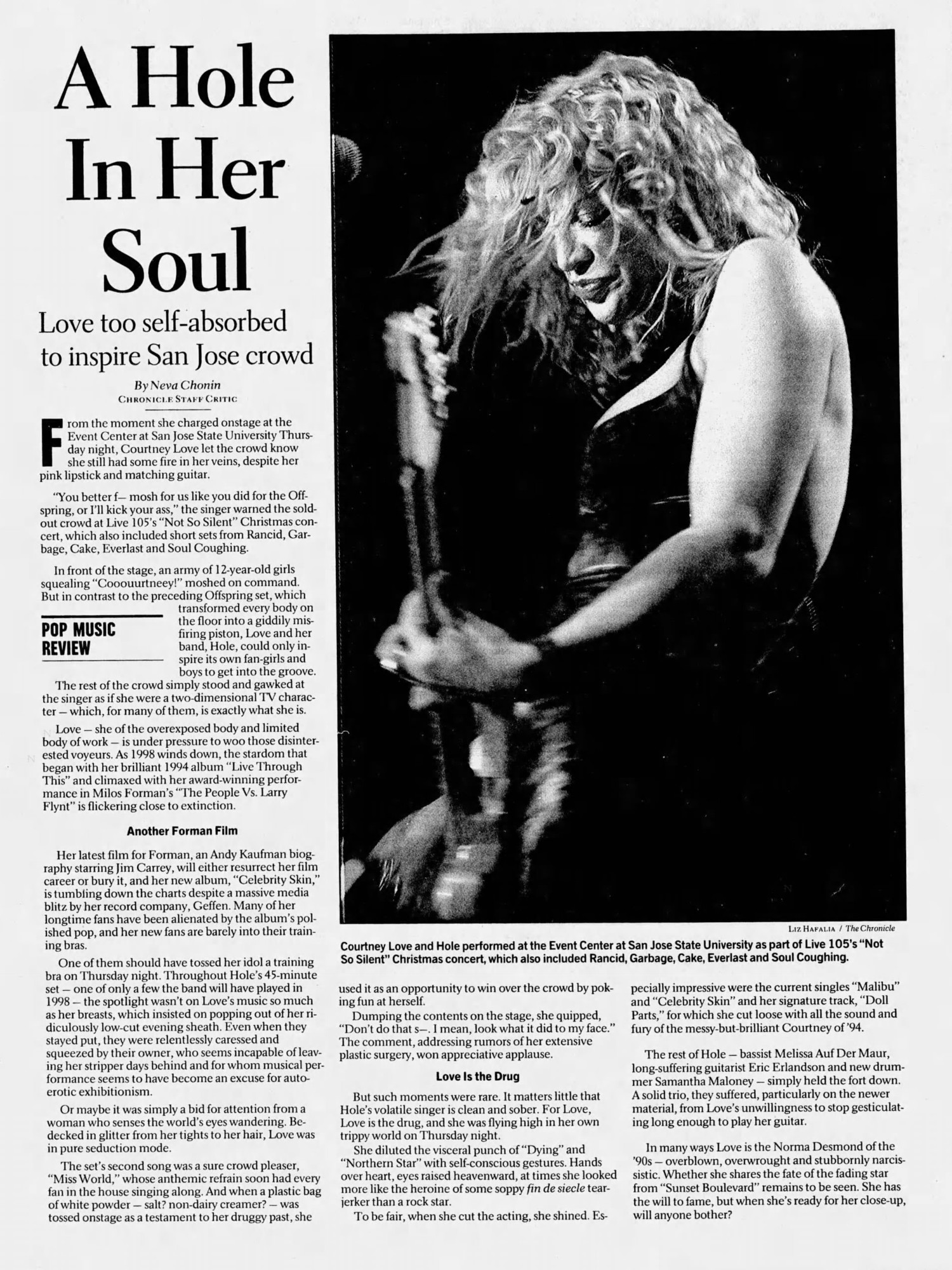 Hole Lineup: Courtney Love (Guitar/Vocals), Eric Erlandson (Guitar), Melissa Auf der Maur (Bass/Background Vocals), and Samantha Maloney (Drums).