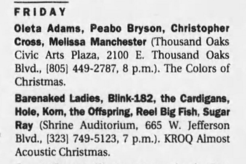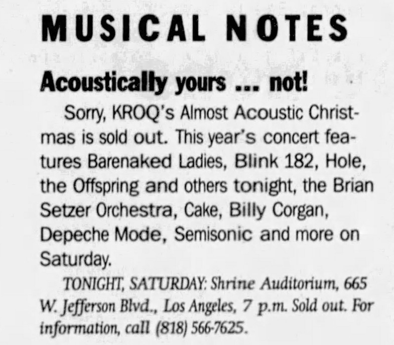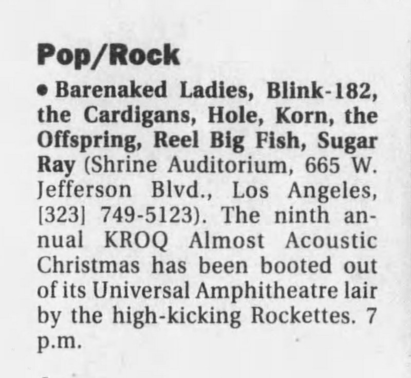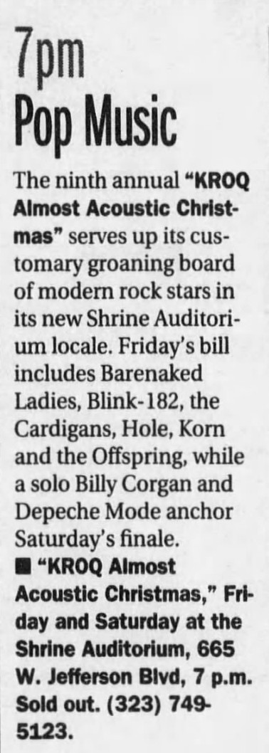 Venue: Shrine Auditorium (KROQ’s Almost Acoustic Christmas)