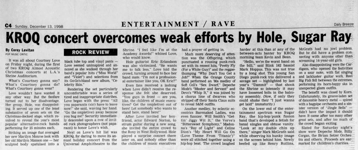 • Courtney announced on stage that the band would be playing at The Roxy later that night.