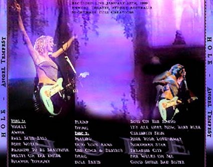 • The photo on the front cover is from 09-10-1998 at the MTV Awards. The photo on the flap is from 01-23-1999 at the Big Day Out. The photos on the back cover are from the actual show.