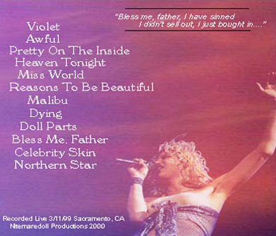 • The photo on the front cover is from 10-23-1998 at Later with Jools Holland. The photo on the back cover is from 02-28-1999 at the Spokane Arena.