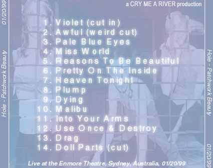 • Cuts in during Violet and there’s a cut within the song. There’s a cut during Awful. Cuts out during Doll Parts.