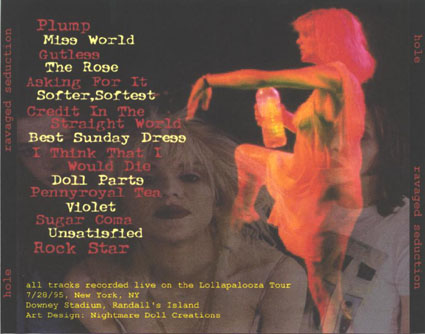 • The photo on the front cover is from the Doll Parts video. The photo on the back cover is from an unknown show in 1994 or 1995.