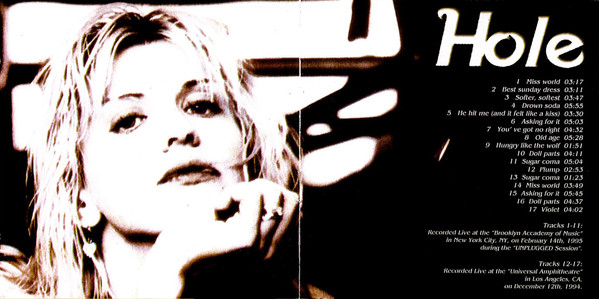 • The photo on the inside flap is from 08-05-1994 at Downing Stadium. The photo on the back cover is from 08-26-1994 at the Reading Festival.